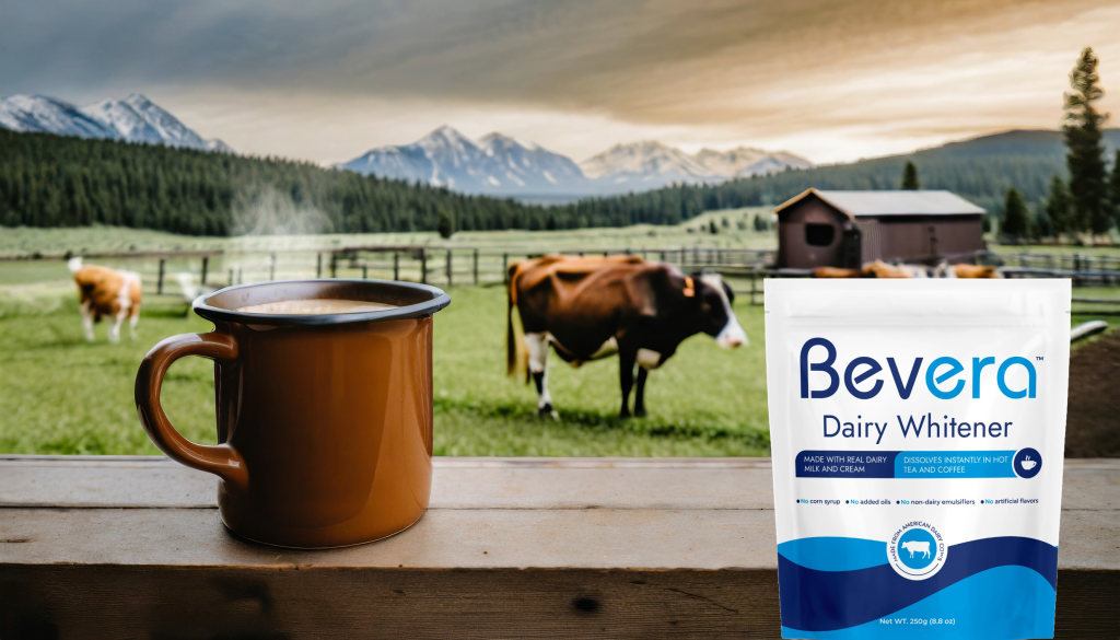 Made with Bevera real dairy whitener containing dairy milk and cream from American Dairy Cows.